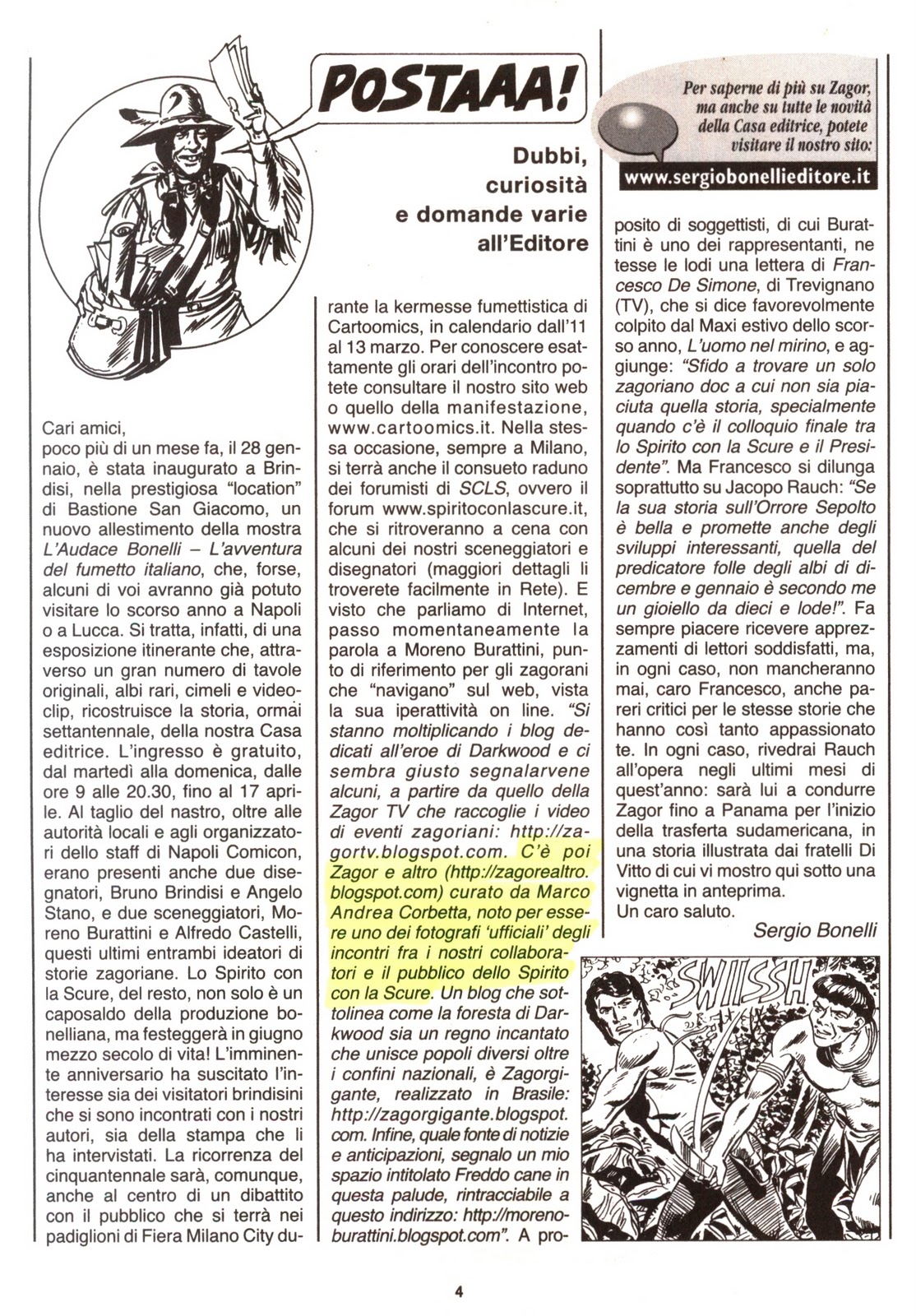 Nel numero del gennaio 1993, Bonelli parlò del successo di questa manifestazione e presentò il catalogo/libro della mostra (pubblicato dalla Glamour): si trattava della riproposizione aggiornata del precedente lavoro pubblicato a livello amatoriale da Burattini-Manetti-Monti "Speciale Zagor Collezionare", arricchito di numerose illustrazioni, di tutte le cover "a striscia" e "giganti" e con allegato un albetto contenete la brevissima storia nolittiana "Smiling" Joe, uscita nel 1965.
